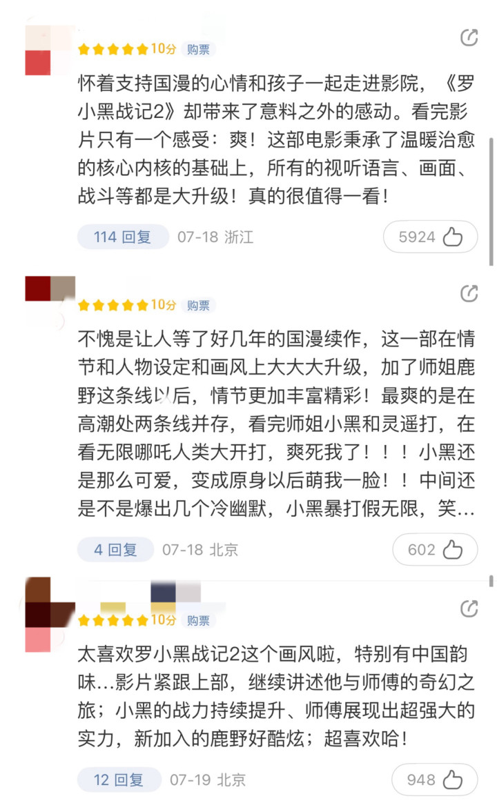 无独有偶,这个暑期档,《罗小黑战记》系列也以独特的IP魅力,在衍生品市场绽放光彩。尽管该IP并不高产:2019年首部电影上映后,时隔六年才推出第二部。但《罗小黑战记》系列凭借充满烟火气的人妖共存世界观,依旧积累了大批忠实粉丝,动画豆瓣评分高达9.5分,B站粉丝超百万,《罗小黑战记2》上映后也收获8.7分的豆瓣好评。
